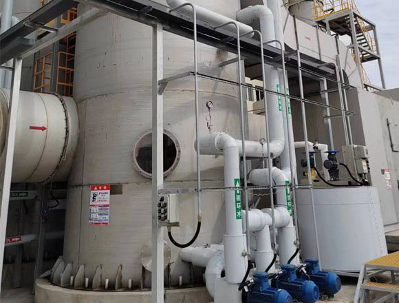 焚燒爐-脫硝系統(tǒng)-導(dǎo)油換熱器-煙氣預(yù)熱器-高溫布袋除塵器-除塵除霧塔--風(fēng)機-控制系統(tǒng)